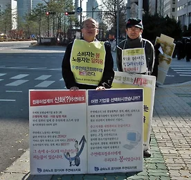 비정규직센터 홍보물 더보기 주연테크 농성 노동자들을 위한 일인시위 지난 11월 23일, 국회 앞에서 주연테크 농성 노동자들을 위한 일인시위를 진행했습니다. 주연테크는 안양에 있는 공장으로 지금 노동조합 지부장과 부지부장이 해고 되었으며 조합원들 전원을 징계하겠다고 하여 농성 100일을 맞이하고 있습니다. 주연테크 노동자들이 해고되면서 농성하게 된 경위는 몇 년전으로 거슬러 올라갑니다. 2006년, 주연테크 노동자들은 370명 중 109명이 노조에 가입하면서 노동조합을 만들게 됩니다. 그리고 그 해, 저녁식사 시간을 보장해 줄 것과 임금 미지급에 항의하여 파업에 들어가게 됩니다. 그러나 회사 측은 노동조합 전임자 임금을 삭감하고 조합원 60명을 배치 전환, 인사발령으로 노조에서 탈퇴하게 하려 했으며 교섭을 거부했다고 합니다. 노동조합을 만든지 일년정도 지난 2007년, .. 더보기 의왕 농장에서 보낸 하루 _ 11월 회원의 날 지난 일요일, 의왕에 있는 농장에 다녀왔습니다. 지역 한무리 나눔의집에서 가꾸는 농장인데 10월 초, 아욱과 상추, 양파, 시금치 등등을 심었다는 이야기를 듣고 회원의 날 행사로 농장에 놀러가기로 했습니다. 며칠 기온이 떨어져 걱정이 많았지만, 다행히 일요일에는 날이 푸근한데다 비닐 하우스 안은 심지어 덥기까지 하더군요. 아직은 농촌의 내음이 풍기는 의왕입니다. 수도권의 도시에 이런 풍경이 있다는 자체만도 숨통이 확 트이는 기븐입니다. 기대하던 농장 하우스에 도착, 먼저 가지고 온 뒷풀이용 음식과 짐들을 들여놓았습니다. 농장일이라고 해서 물주고, 풀뽑고... 그런 것을 기대하고 갔던 것과 달리... 주된 일은 노가다였습니다. _,,_;;; 하우스 안의 널부러진 공구들과 짐들을 정리하기 시작합니다. 안양군.. 더보기 이전 1 ··· 96 97 98 99 100 101 102 다음
